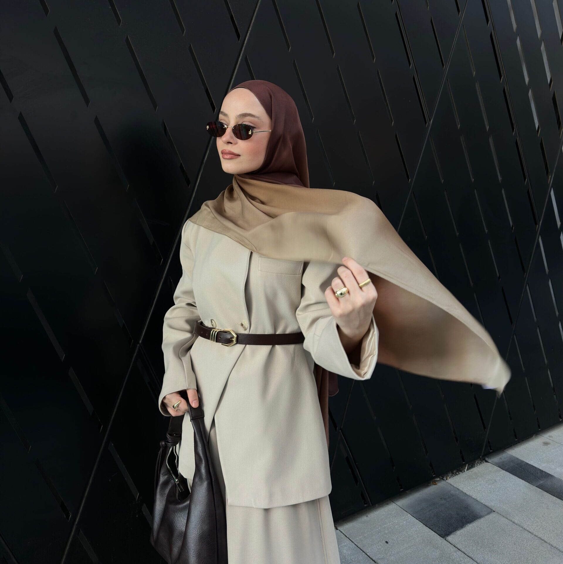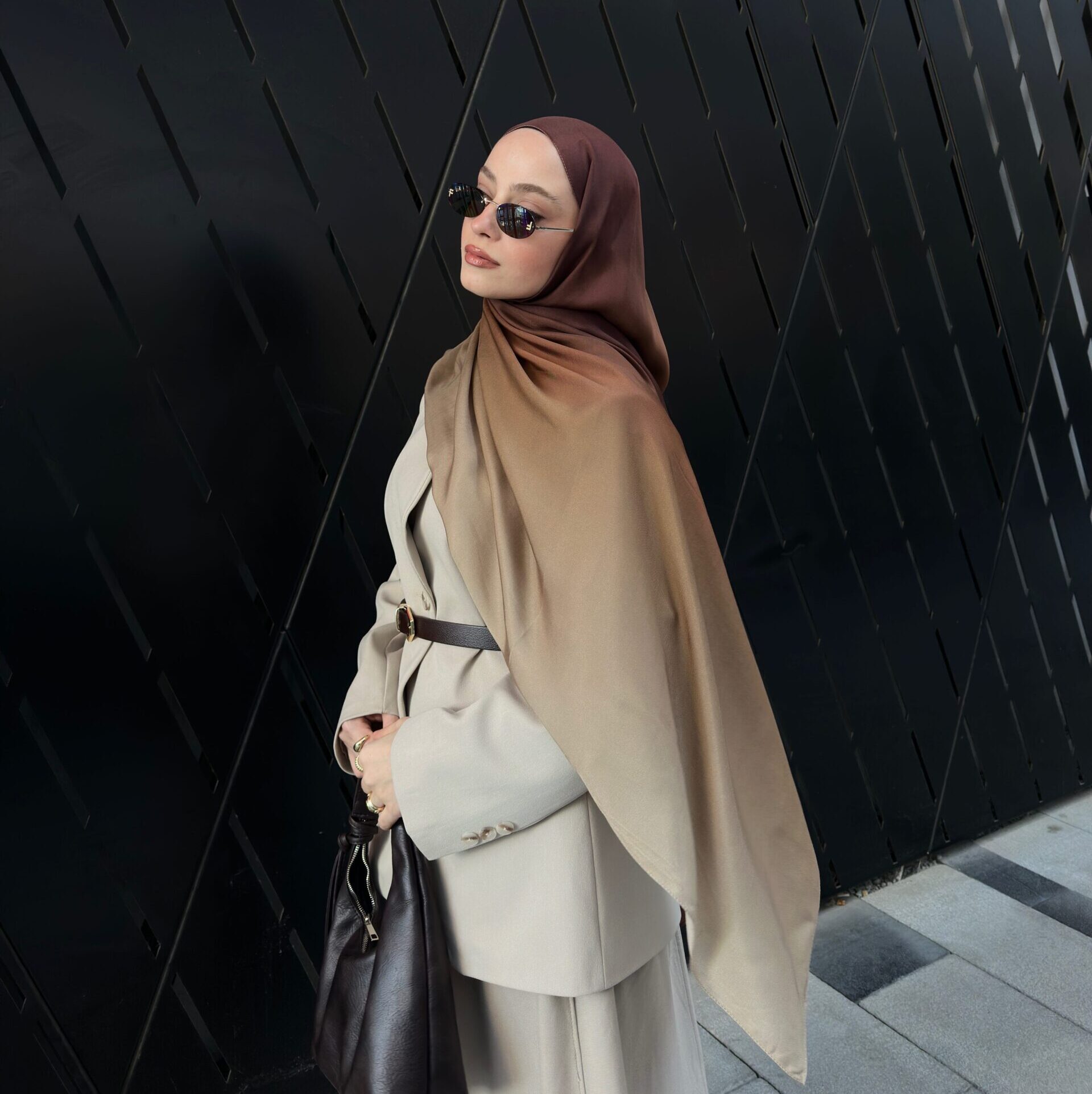 Şeyda’nın Tercihi Lovury İpeksi Şal Degrade Vizon – Acı Kahve